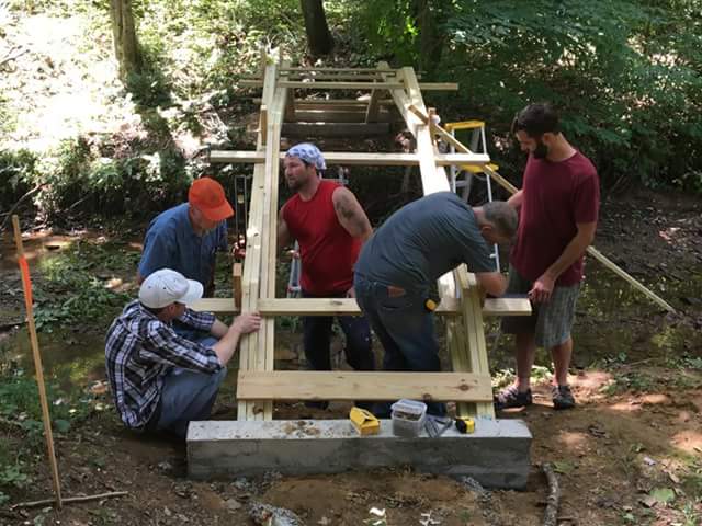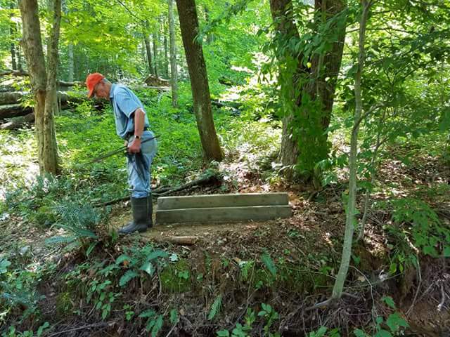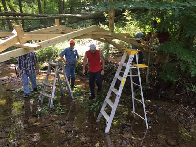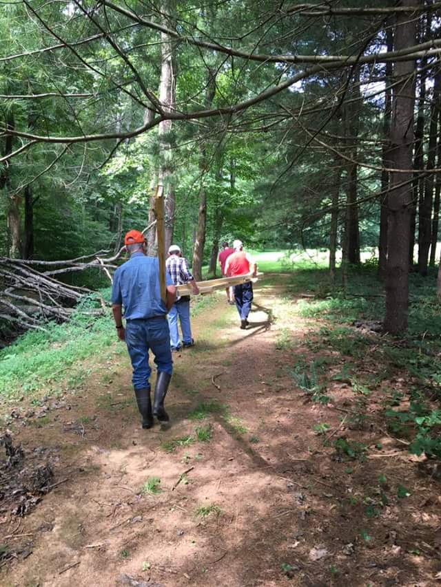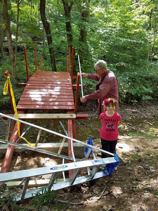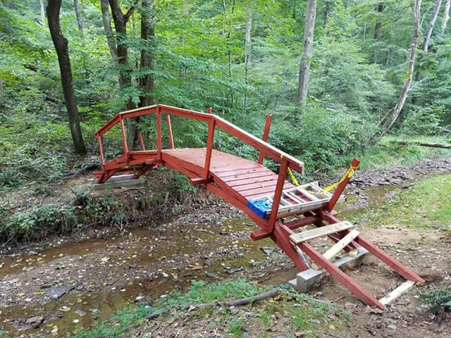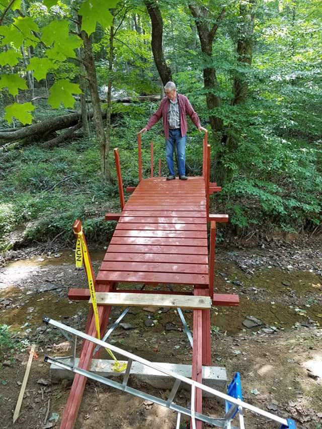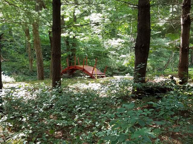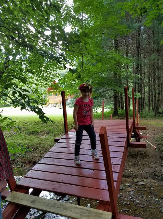 We hope you will enjoy crossing the creek on our new bridge on your next Marsh Hollow vacation. It makes a great photo op and gives you access to our trail through the woods.